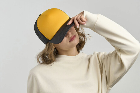 Легкая бейсболка RAPPER - культовая бейсболка-тракер, которая отлично подойдет для мероприятий, проводимых в теплое время года. - 5 клиньев, - без лобового шва, - боковые и задние панели со вставкой из мягкой сетки, - изогнутый козырек, - пластиковая застежка. Лобная часть купола: цвет близкий к Pantone White, козырёк и сетка - Pantone 1235 C