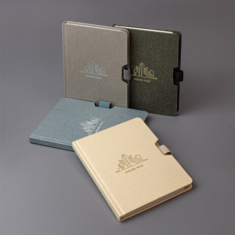 Блокнот MEMO, размер 130*170 мм, обложка жесткая из переработанного натурального волокна, 80 листов из переработанной кремовой бумаги, 70 г м2. Резинка-пенхолдер. Ручка в комплект не входит