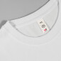 Укрепляющая тесьма на внутренней стороне горловины и плечевых швов. Плечи обработаны цепным швом который создаёт прочное и эластичное соединение - оно не осыпается и не растягивается, благодаря ему плечо надёжно держит красивую форму. Круглый вырез отделан эластичным рибом.