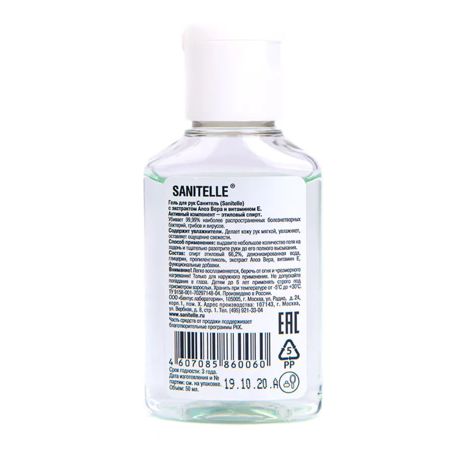Гель антисептический с экстрактом алоэ и витамином Е, 50 мл флакон