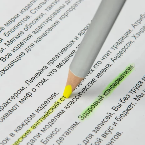 Карандаш-текстовыделитель двухсторонний, двухцветный. Мягкий грифель класса А позволяет легко выделить нужный фрагмент текста. Текстовыделители маркерного типа достаточно сложный продукт с ограниченным сроком годности и специальными условиями хранения. Преимущество данной модели в том, что карандаш не имеет срока годности, не течет и не пачкает руки.
