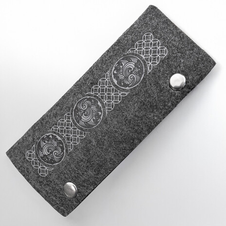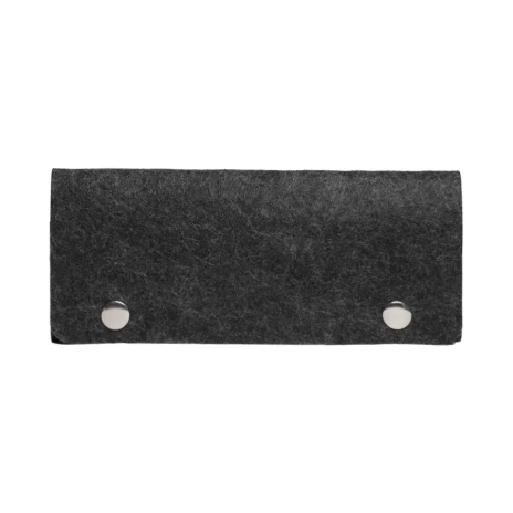 Ключница из RPET фетра на 2х кнопках-застежках. Внутри металлическая вставка на 6 ключей. Цвет темно-серый. Размер 10 х 17,3 см (20,3 х 17,3 в раскрытом виде). Плотность 3 мм. Виды нанесения: обычный трансфет и DTF.