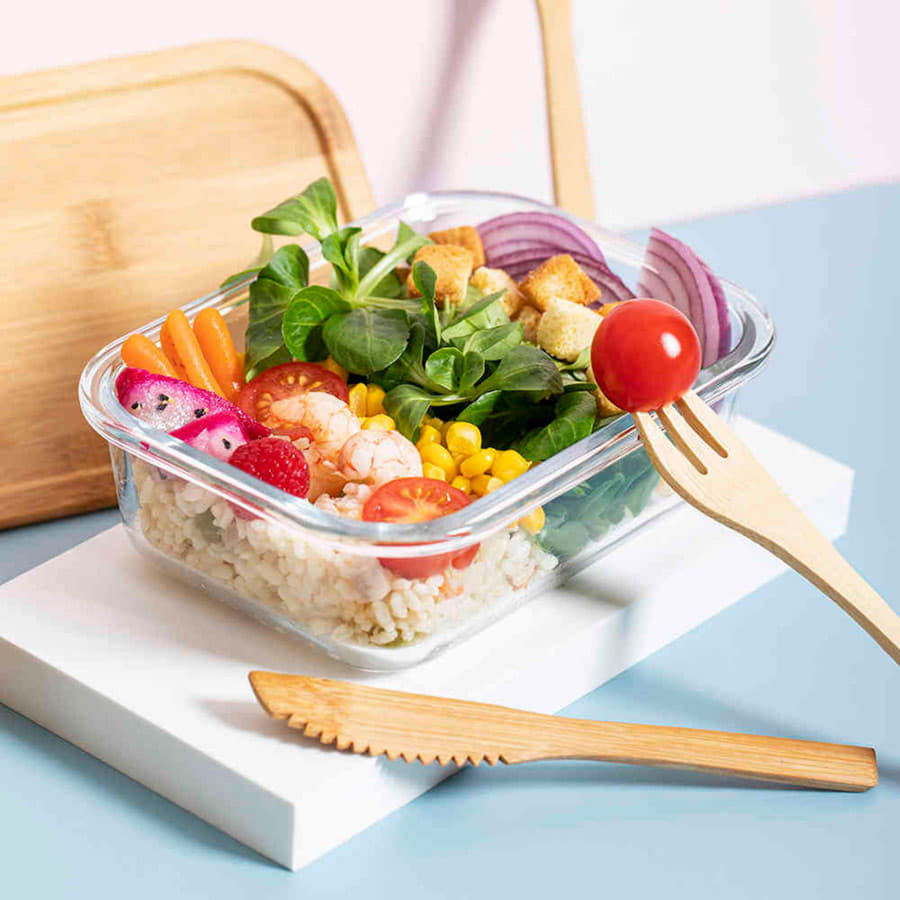 Ланч-бокс BEJAR, ложка, вилка нож в комплекте, стекло/бамбук