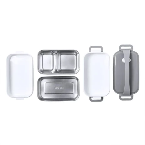 Термоланч-бокс с двумя контейнерами по 850мл и один из них разделен на два: 350 и 500мл. Контейнеры имеют металлические вставки из нержавеющей стали и крышки с уплотнительными резинками, для более плотного прилегания к емкостям. Идеально подходит для поддержания температуры жидкости или еды в контейнерах - в среднем 3-4 часа (в зависимости от изначальной температуры и температуры окружающей среды)Не рекомендуется для использования в микроволновой печи и посудомоечной машине.Индивидуальная упаковка - ПЭ пакет