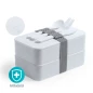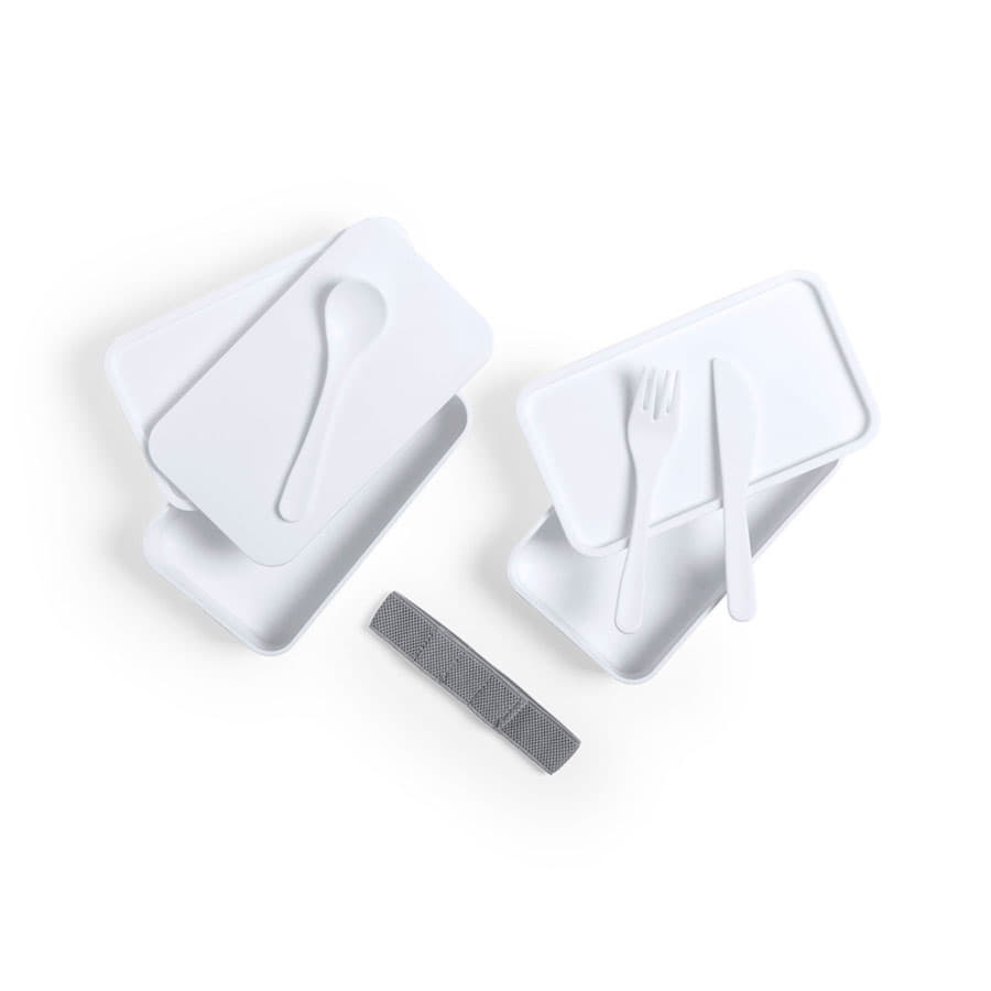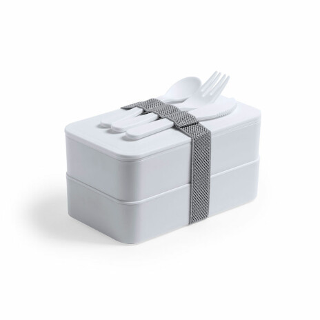 Ланч-бокс с двумя контейнерами, крышками и столовыми приборами: ложка, вилка, нож. Они крепятся на специальной резинке на корпусе изделия. Ланч-бокс изготовлен из особого антибактериального пластика (BPA free) и упакован в специальный пакет. Антибактериальный пластик снижает уровень бактерий, присутствующих на поверхностях, благодаря добавлению постоянных статических микробных агентов, с высокой эффективностью предотвращающих бактериальное загрязнение. Изделие соответствует стандарту ISO 22196, который определяет антибактериальную активность в пластичных материалах и непористых поверхностях. Ланч-бокс подходит для использования в микроволновой печи, посудомоечной машине и холодильнике.