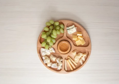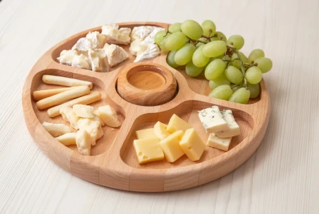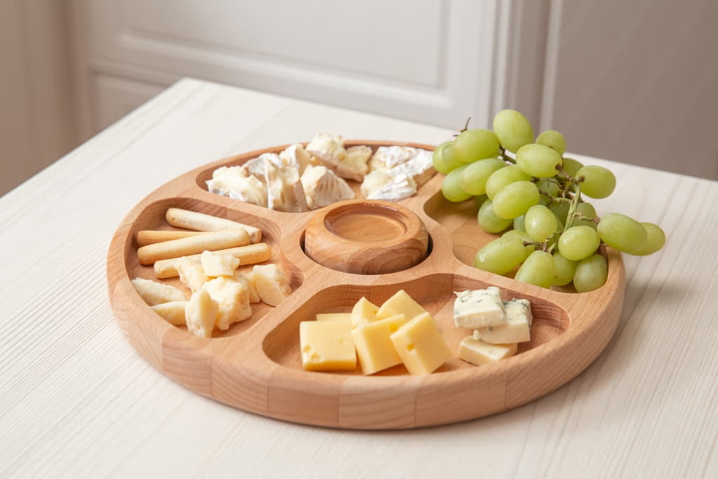 Менажница круглая d=23см, выполнен из премиум материала бук. Материал отличается следующими преимуществами: Прочность - премиум материал дерева Бук Безопасность - обладает противомикробными свойствами, не вызывает аллергических реакций Простой в уходе - моется теплой водой, допускается использование средств для мытья посуды Экологичность - натуральное и безопасное сырьеУдобство - устойчив на любых плоских поверхностях, включая диваны и кровати