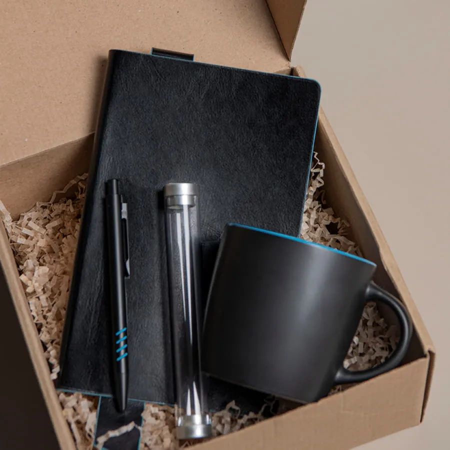 Набор подарочный DESKTOP: кружка, ежедневник, ручка, стружка, коробка, черный/голубой