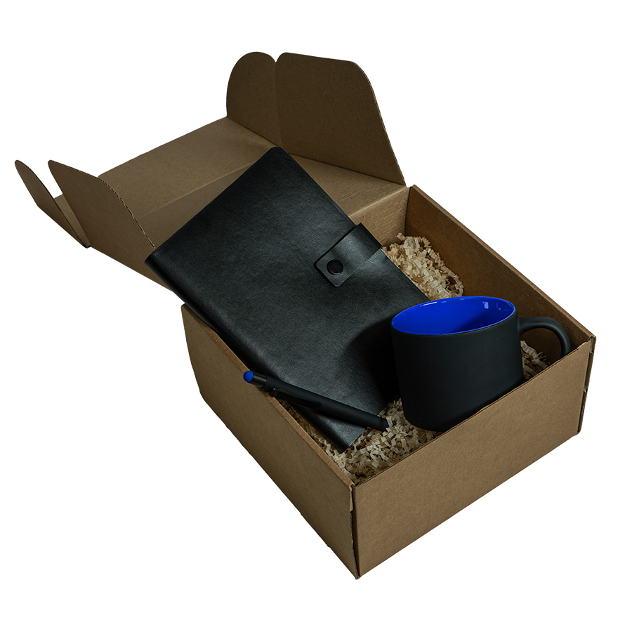 Набор подарочный DYNAMIC: кружка, ежедневник, ручка, стружка, коробка, черный/синий