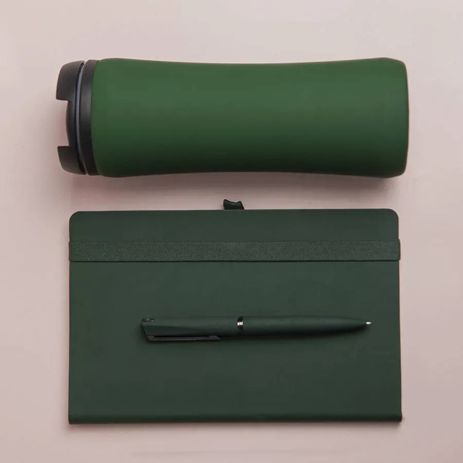 Набор подарочный OFFICEKIT: термос, ежедневник, ручка, стружка, коробка, зелёный
