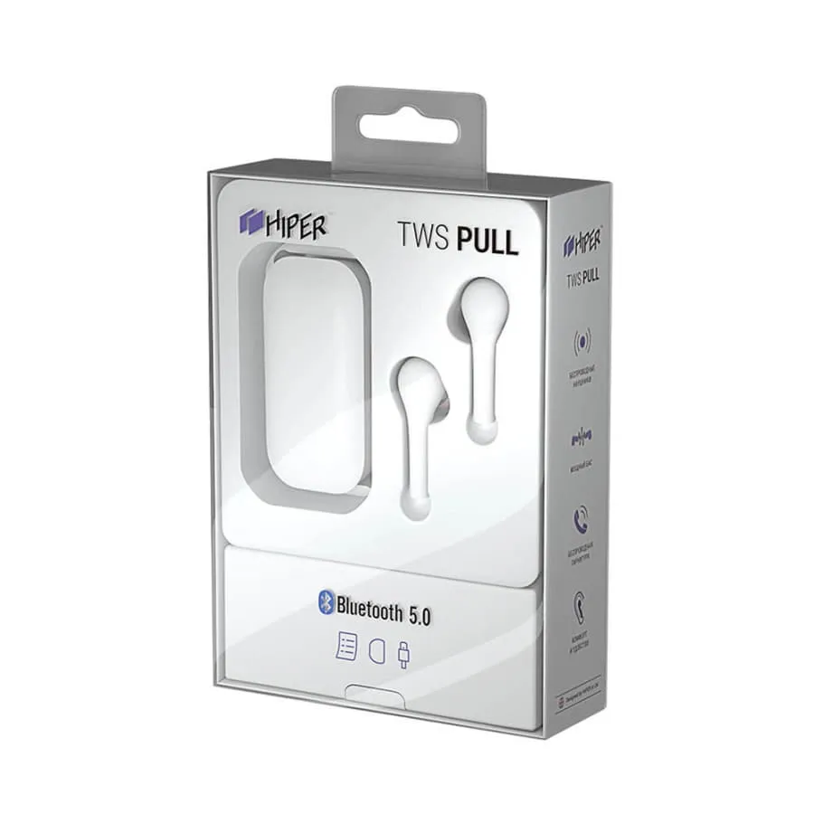 Ультра легкая полностью беспроводная гарнитура (TWS - true wireless stereo) с лаконичным минималистичным дизайном и сенсорным управлением. Удобные, комфортные Bluetooth наушники в специальном зарядном боксе для безграничного пользования. HIPER TWS Pull – комфорт и легкость. К особенностям модели можно отнести: Новый чипсет Bluetrum для чистого и ровного звука. Гарнитура подойдет для прослушивания разных музыкальных направлений, от классики до тяжелого рока. Реалистичность звучания. HIPER TWS Pull отличает точность передачи воспроизводимых инструментов и широта музыкальной картины. Лаконичный и минималистичный дизайн гарнитуры. Высокая эргономика. Благодаря легкости и особой форме гарнитуры, даже при длительном использовании гарнитура не утомляет. Компактный чехол-зарядка. Гарнитура не занимает много места и будет необременительна даже в кармане джинсов. С помощью многофункциональной сенсорной кнопки, можно переключить трек, ответить на входящий вызов, набрать предыдущий вызов, не доставая из кармана телефон. Чувствительный микрофон для комфортного общения в режиме «handsfree». Версия Bluetooth 5.0 – отличается энергоэффективностью и помехозащищённостью. Больше музыки. Для полного восстановления заряда гарнитуре достаточно 1,5 часа, поэтому если вы слушаете гарнитуру по пути на работу (школу, ВУЗ), заряжать ее можно будет 1-2 раза в неделю. Русскоговорящее меню. Все голосовые оповещения в гарнитуре происходят на русском языке. Степень пыле и влагозащиты – IP54. Позволит не бояться капризов погоды, вы сможете наслаждаться музыкой в любую погоду. Официальная спецификация: