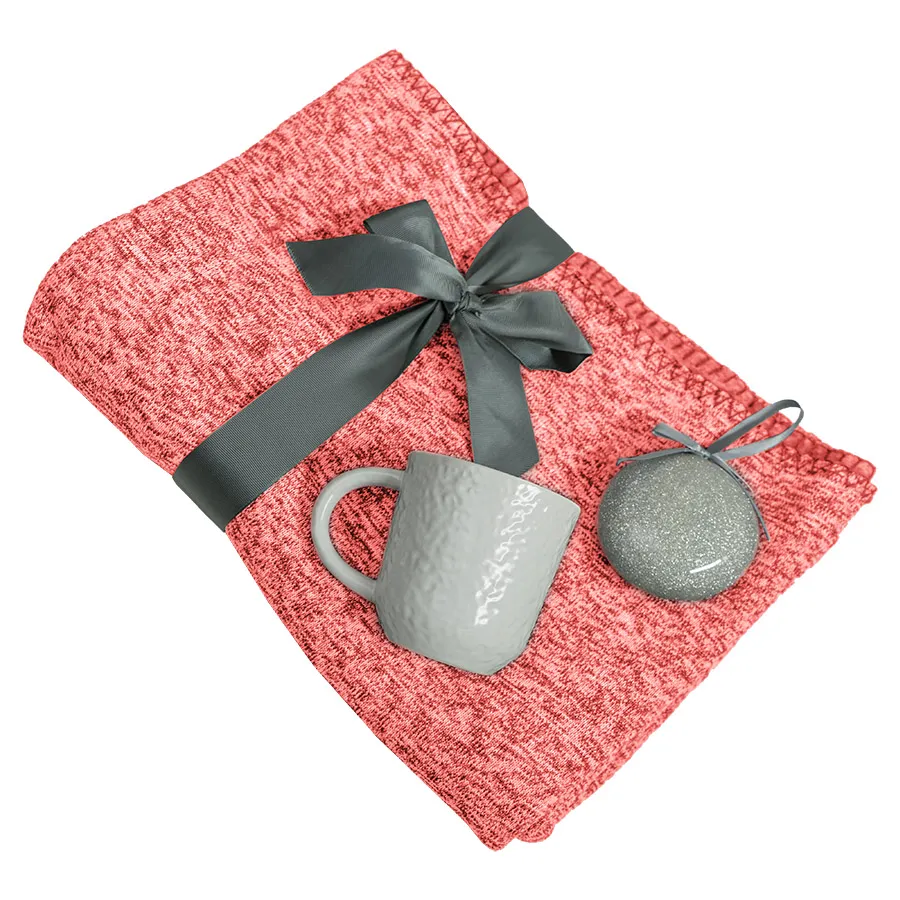 Подарочный набор HOLIDAY: плед, кружка, шар новогодний, коробка; красный