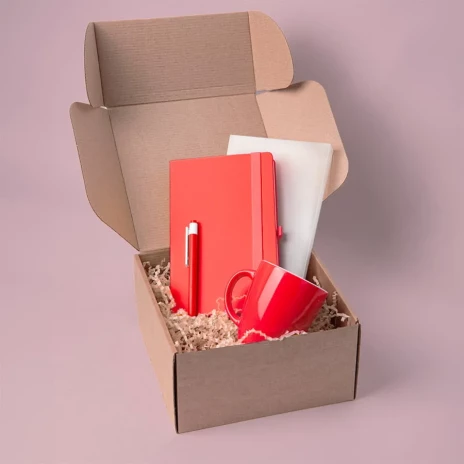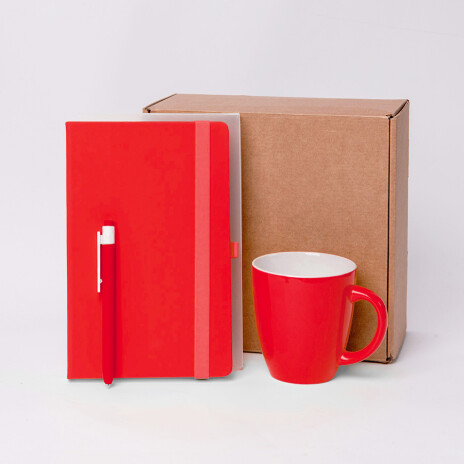 Подарочный набор JOY: блокнот, ручка, кружка, коробка, стружка; красный