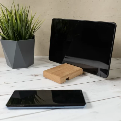 Подставка для смартфона, две разные выемки позволяют установить в держатель смартфон как в плотном бронечехле, так и без него, при этом смартфон будет хорошо зафиксирован, выполнен из премиум материала бук. Материал отличается следующими преимуществами: Прочность - премиум материал дерева Бук Безопасность - обладает противомикробными свойствами, не вызывает аллергических реакций Простой в уходе - моется теплой водой, допускается использование средств для мытья посуды Экологичность - натуральное и безопасное сырьеУдобство - устойчив на любых плоских поверхностях, включая диваны и кровати