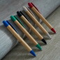 • Pantone деталей, близкий к White• Размер 140*11 мм• Корпус из бамбука• Детали из переработанного пластика с добавлением пшеничного волокна• Значок переработки на оголовке ручки• Нажимной механизм подачи стержня• Пулевидный пишущий узел 1.0 мм• Длина линии письма 1000 м.• Цвет чернил синий• Сменный стержень