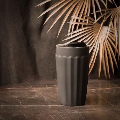 Керамический стакан с двойными стенками, имеет необычную форму с гранямиКорпус имеет прорезиненное покрытие, оно отлично подходит для лазерной гравировки: изображение получается ярким и выделяющимсяПластиковая крышка с силиконовым уплотнителем не даст вашему напитку быстро остыть, но рекомендуется использовать температуру напитков не выше 80С