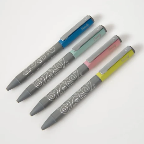 SWEETY - верная спутница всех, кто стремится успеть все на свете, сохранив внутреннюю гармонию. Строгость линий в сочетании с нежными пастельными оттенками, матовый серый корпус с серебристо-зеркальной гравировкой - сбалансированный и вдохновляющий образ, настраивающий на творческую волну. SWEETY - деталь, которая подчеркнет активную жизненную позицию и умение сохранять позитивный настрой в динамичном ритме рабочих будней. Это не только красивый, но и удобный инструмент с плавным поворотным механизмом и мягко пишущим стержнем с чернилами Dokumental. Pantone, близкий к 386С. Стержень Parker style refill, толщина пищущего узла 1 мм, чернила Dokumental, синие. Алюминиевый корпус, пластиковые носик, кольцо и заглушка клипа, стальной клип. Угол поворота корпуса: 180°, механизм с доводчиком.