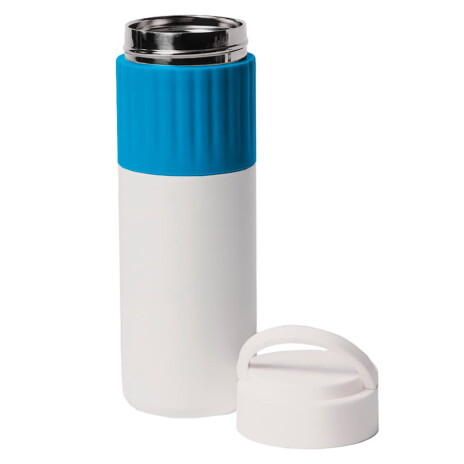 Термос TURBO с двойными стальными стенкамиСтильный белый матовый корпус термоса с цветной силиконовой манжетойДержатель на крышке для удобства переноскиГерметичная навинчивающаяся крышка не даст напитку пролиться