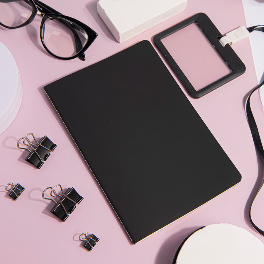 Тетрадь SLIMMY, 140 х 210 мм, черный с черным, бежевый блок, в клетку