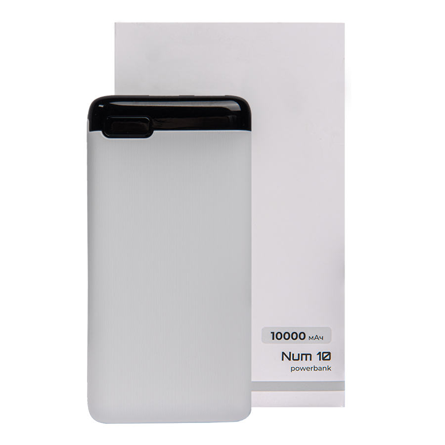 Универсальный аккумулятор Num 10 (10000 мАч), белый, 13,9х6.9х1,4 см