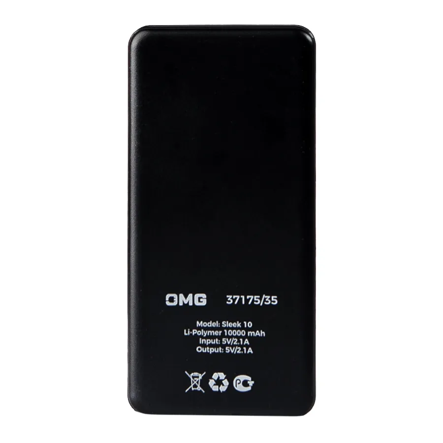 Универсальный аккумулятор Sleek 10 (10000 мАч), черный, 14х6.8х1,5 см