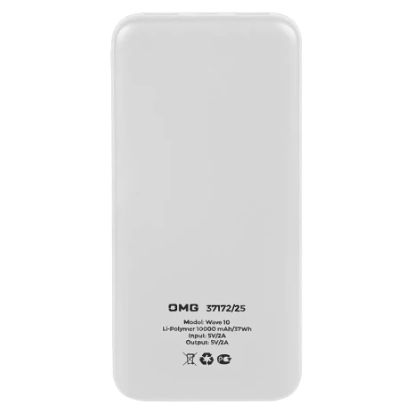 Универсальный аккумулятор Wave 10 (10000 мАч), белый, 14,9х6.7х1,6 см