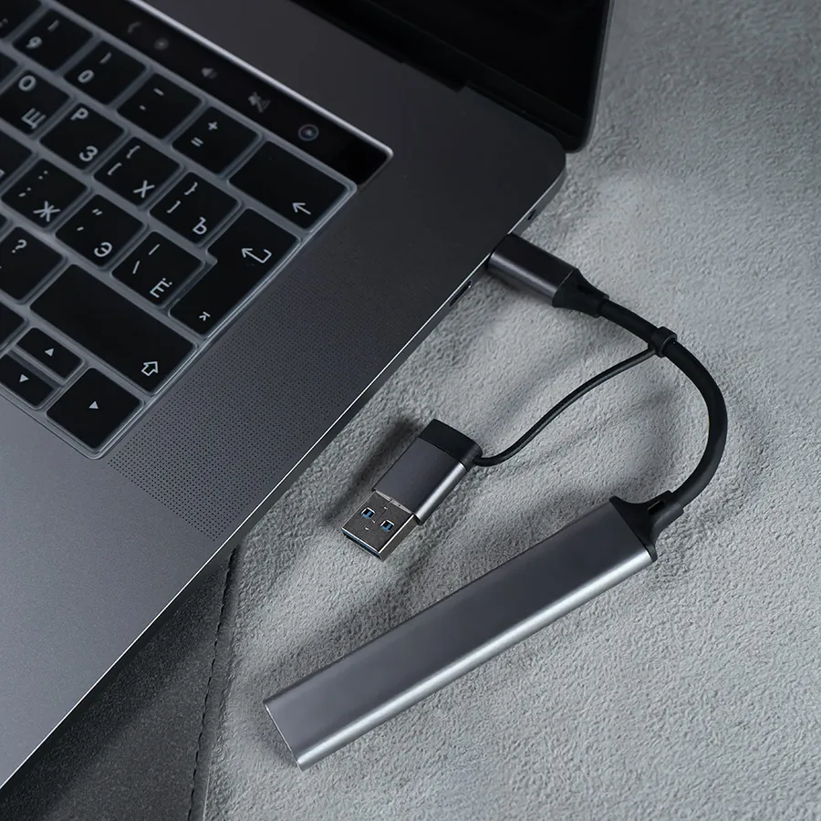 USB-хаб BRANCH 4 в 1, серый, алюминий