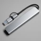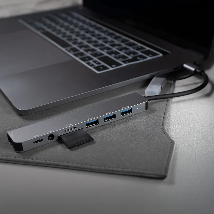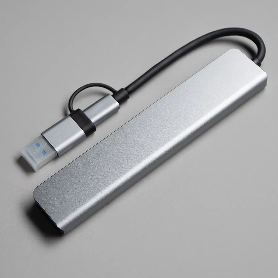USB-хаб в алюминиевом корпусе оснащен 3-мя разъемами USB 2.0 и 1-им разъемом USB 3.0, а также 1-им разъемом USB Type-C, считывателем MicroSD и SD карт, разъемом Jack 3,5 мм. Устройство в совокупности имеет 8 разъемов и 2 способа подключения: USB-A и USB Type-C, что делает его многофункциональным и удобным в использовании. USB Хаб не требует дополнительного питания, так как питание устройств, подключенных для синхронизации и подзарядки, осуществляется от порта компьютера ноутбука. Работает со смартфонами, которые поддерживают функцию OTG (большинство современных смартфонов). Технические характеристики:Материал корпуса: алюминийКоличество разъемов USB 2.0 3Количество разъемов USB 3.0 1Количество считывателей карт MicroSD 1Количество считывателей карт SD 1Количество разъемов Jack 3,5мм 1Количество разъемов USB Type-C 1Тип подключения: USB-A, USB Type-C 1 Совместимые устройства: мобильный телефон, персональный компьютер, ноутбук