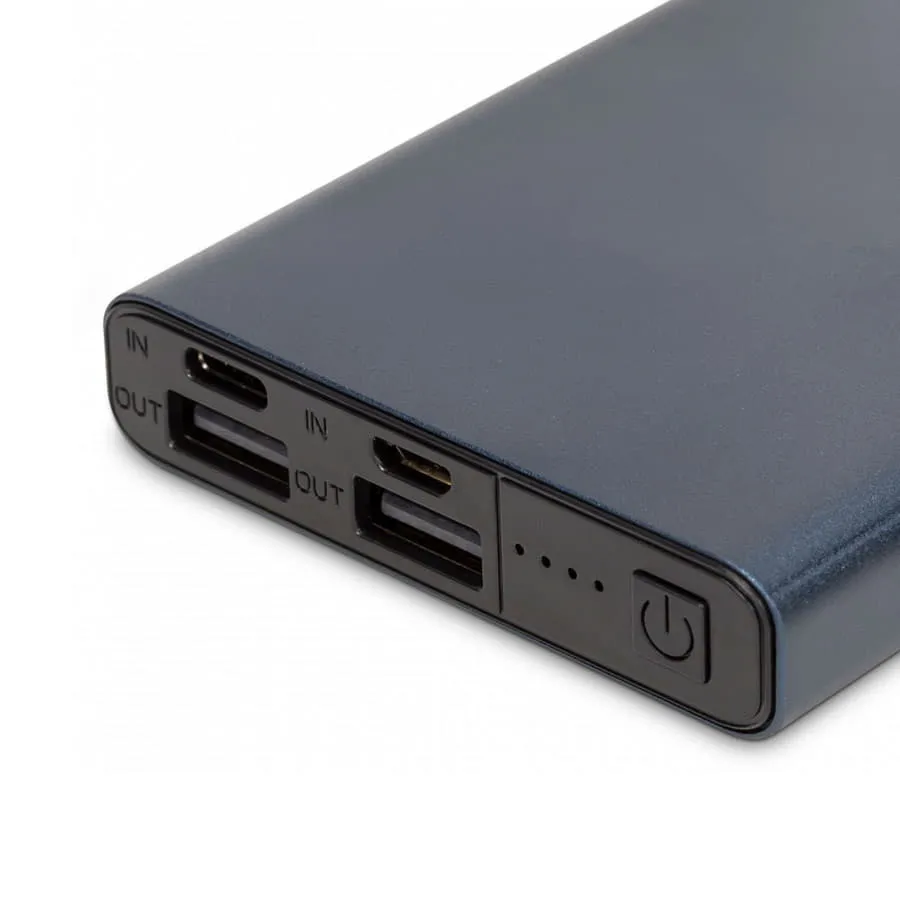 Несмотря на алюминиевый корпус толщина пауэрбанка менее 1,5 см, а вес всего 215 граммов. Износоустойчивый материал насыщенного синего цвета приятен на ощупь и не склонен к механическим повреждениям.