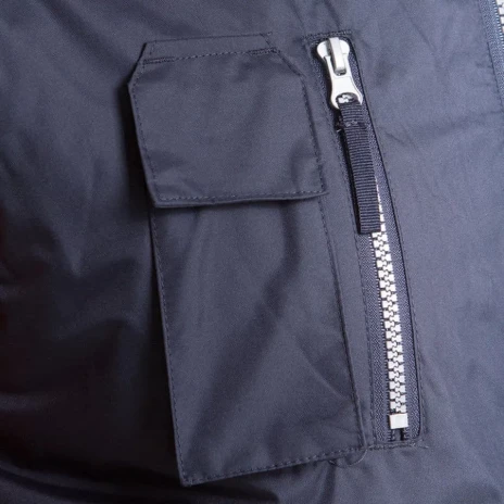 Два кармана спереди для рук, карман на груди для мобильного телефона, а также внутренний карман для бумажника.