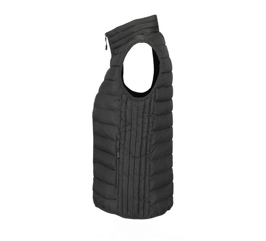 Металлические слайдеры с дополнительными модными пуллерами в тон изделия.Воротник-стойка. Эластичная тесьма по проймам и низу в тон изделия. Дополнительно жилет комплектуется сумкой-мешочком для хранения из основной ткани (но не упаковывается в неё).