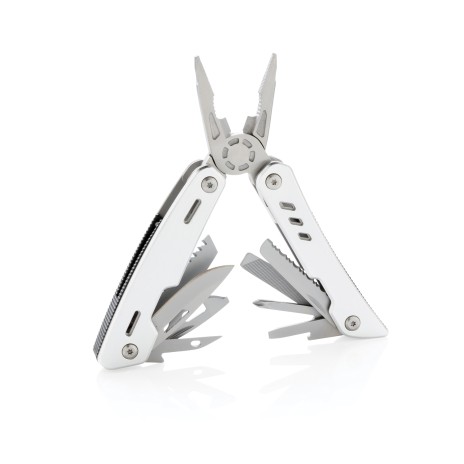 Надежный и долговечный мультитул с 12 функциями, корпус которого выполнен из алюминия, а инструменты – из нержавеющей стали. В мультитуле предусмотрены: узкогубцы, плоскогубцы, кусачки, нож, крестообразная отвертка, малая плоская отвертка, пилка, консервный нож, штопор, зубатый нож, шило, напильник и большая плоская отвертка. Поставляется в подарочной упаковке.