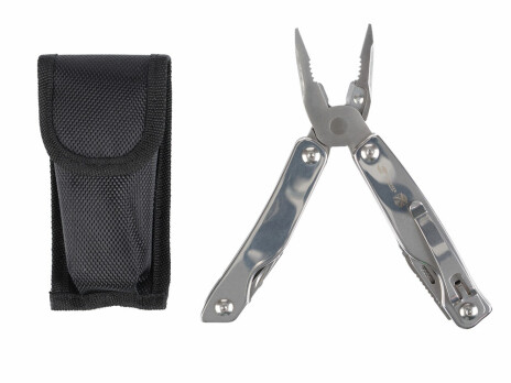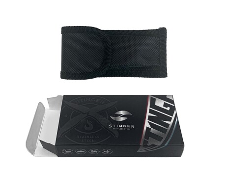 - Мультитул Stinger, 100x45 мм, 11 функций, сталь, серебристый, в комплекте нейлоновый чехол