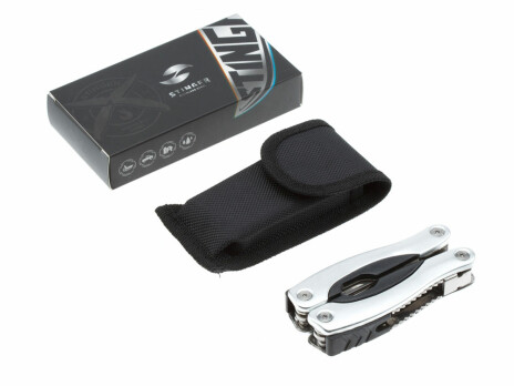 - Мультитул Stinger, 100x50 мм, 15 функций, сталь/алюминий/пластик, серебристый, в нейлоновом чехле