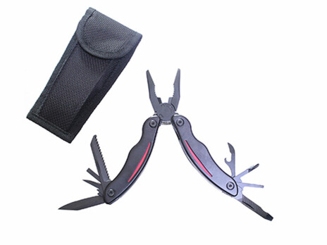 - Мультитул Stinger, 105x50 мм, 9 функций, сталь/пластик, чёрно-красный, в комплекте нейлоновый чехол