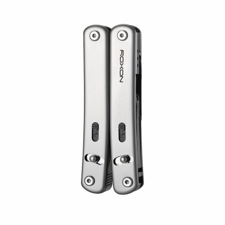 Roxon Flex S804G — универсальный складной мультитул с возможностью выбора и замены инструментов. Эта функция значительно облегчает устройство и делает его более эргономичным. Для добавления или замены инструментов предусмотрены 10 слотов — по 5 в каждой ручке. Каждый инструмент легко заменяется и фиксируется с помощью специального механизма.