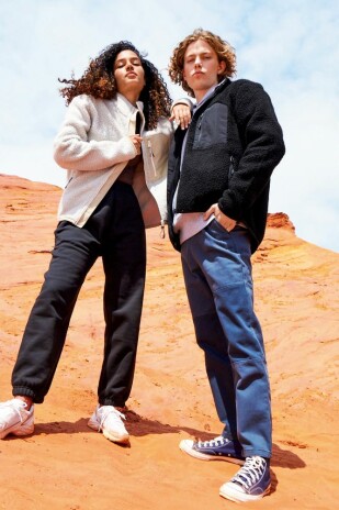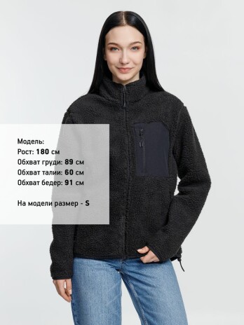 Куртка унисекс из фактурной искусственной шерпы с гладкой отделкой из таслана.
