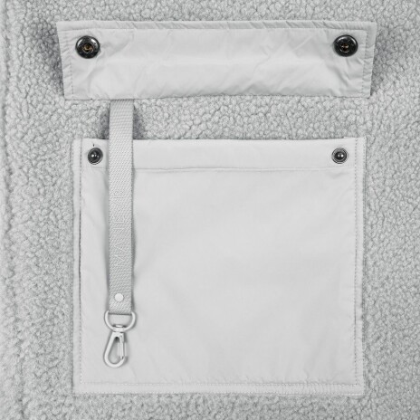 Куртка на молнии из современного двухслойного материала — модный искусственный мех снаружи и уютный флис внутри. Накладные карманы из гладкого нейлона создают заметный визуальный контраст и делают куртку Oblako по-настоящему стильным предметом гардероба.