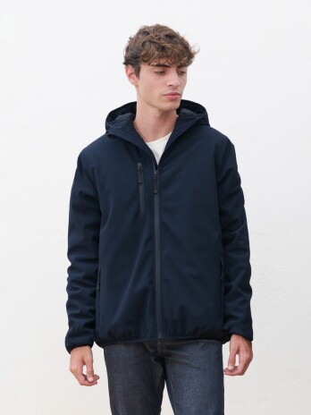 Мужская куртка софтшелл на молнии и с капюшоном.