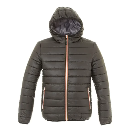 Основная ткань: цвет, близкий к Pantone 433 C, подкладка: цвет, близкий к Pantone 424 C Мягкая и легкая куртка из нейлона. Контрастная облегченная пластиковая молния со съемным пуллером. Два кармана на молнии. Внутренний карман на липучке. Манжеты рукавов, капюшон и низ куртки обрамлены эластичной резинкой.