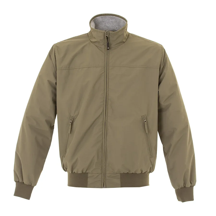 Основная ткань: цвет, близкий к Pantone 417 С, подкладка: цвет, близкий к Pantone Cool Gray 5 C Стильная куртка бомбер из водоотталкивающей ткани. Подкладка становой части выполнена из мягкого флиса, а подкладка рукавов из полиэстера и наполнителя. Два боковых кармана на молнии. Один внутренний карман на липучке. Низ рукавов и низ изделия, обработаны резинкой (риб 1х1).