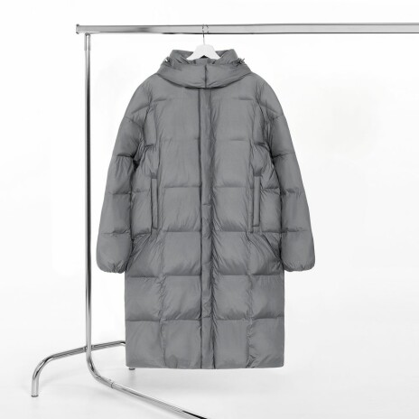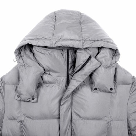 Удлиненный пуховик унисекс с капюшоном.