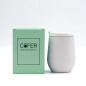 Характерная обтекаемая форма с расширяющейся нижней частью придает коферу оригинальность. Благодаря этой форме, кофер можно использовать для любых напитков: вода, чай, кофе, вино, коктейли - наливайте в кофер все, что захотите, напиток надолго сохранит свою температуру и вкус.