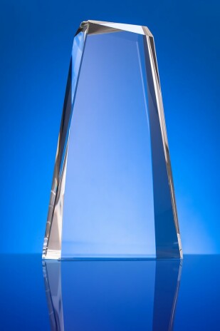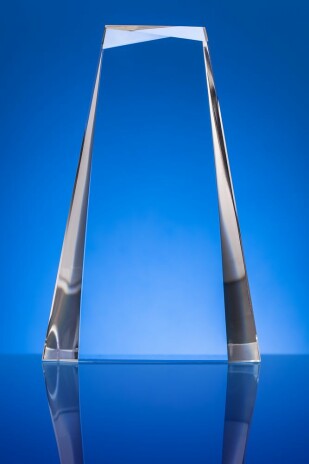 Стела изготовлена из стекла К9, в основе которого лежит оптическое боросиликатное стекло. Эту марку стекла отличает низкий процент посторонних включений, высокий показатель преломления и высокая прозрачность — идеальные качества для изготовления наград премиального уровня.
