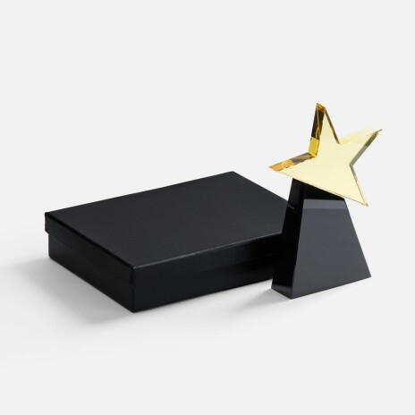 Переливающаяся золотистым блеском звезда подчеркнет статус награды и лидерские качества ее получателя. Внушительный постамент добавит основательности и устойчивости как доказательство того, что признанный успех — далеко не случайность.