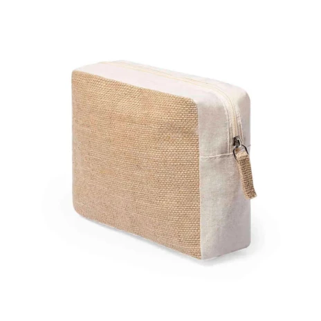 Косметичка из ламинированного джута и натурального хлопка. С застежкой-молнией и джутовым пулером.
