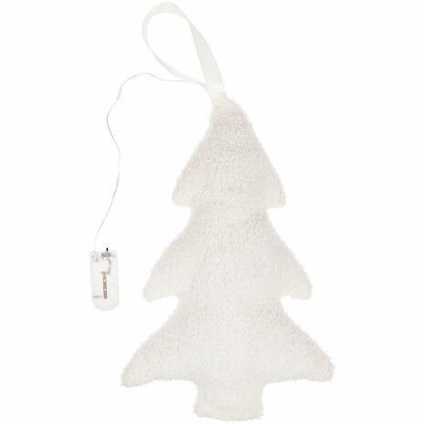 Внутри мягкой елочки находится миниатюрная гирлянда с теплым светом. Работает от 2 батареек типа CR2032 (входят в комплект).