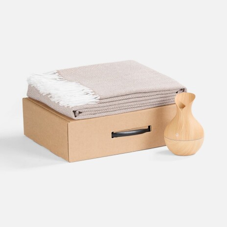 Мягкий плед нежных оттенков подарит тепло и комфорт, а изящный увлажнитель наполнит воздух свежестью и приятным ароматом. Этот набор — гармония красоты и функциональности, где каждый момент посвящен ценному отдыху и расслаблению.