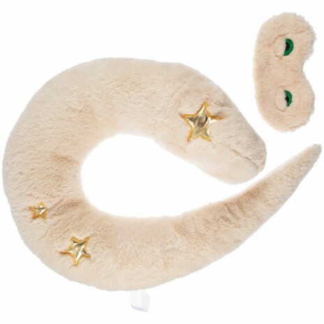 Змея, кусающая саму себя за хвост, — известный символ цикличности жизни и вечного круговорота событий. Цикл сна и бодрствования желательно тоже не нарушать: наполнить день энергией и погрузиться в приятную негу легко в компании с пушистой змейкой-подушкой под шею Kussen и такой же мягкой маской для сна с забавными полуприкрытыми глазками.