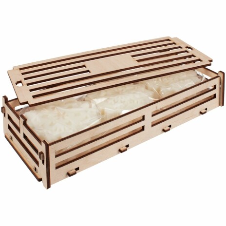 Набор из трех свечей в фанерном ящичке. Каждая снежинка в наборе представлена в своем неповторимом узоре.Набор из 3 свечей в ящике. Каждая снежинка упакована в отдельный полиэтиленовый пакет.