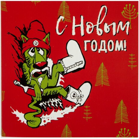 В набор входят 3 двойные открытки: «Ну, накати!», «Елки-кошки», «Щелкунчик». К каждой открытке прилагается бумажный конверт.